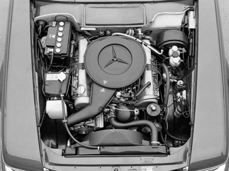 Côtés moteurs, l’offre des SL et SLC était pléthorique. Au V8 du départ (350 SL) s’ajouteront ensuite un 4.2 litres sur la 450 SL en 1973 (225 ch mais 195 seulement pour les USA) puis un 6 cylindres en ligne d’entrée de gamme en 1974 sur la 280 SL (2.8 litres et 185 chevaux). Sur ces 3 moteurs, les puissances évolueront au fur et à mesure des millésimes. En 1980, de nouveaux moteurs apparaissaient : V8 3.8 218 ch ou 157 ch pour les USA (380 SL qui remplacent la 350 CL), et 5 litres et 225 chevaux (500 SL).