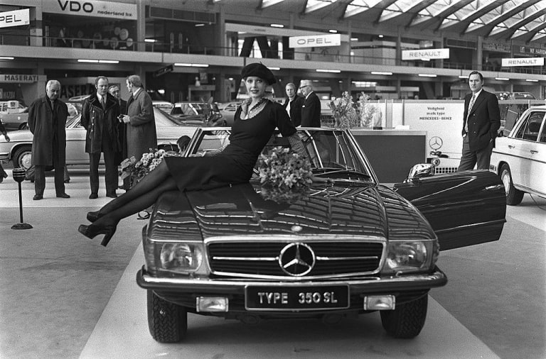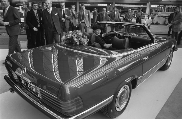 Sylvia Kristel fait la promotion de la SL R107 en 1973