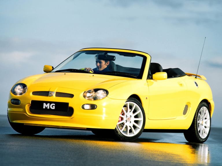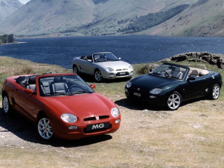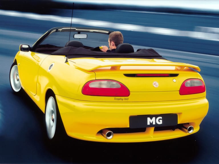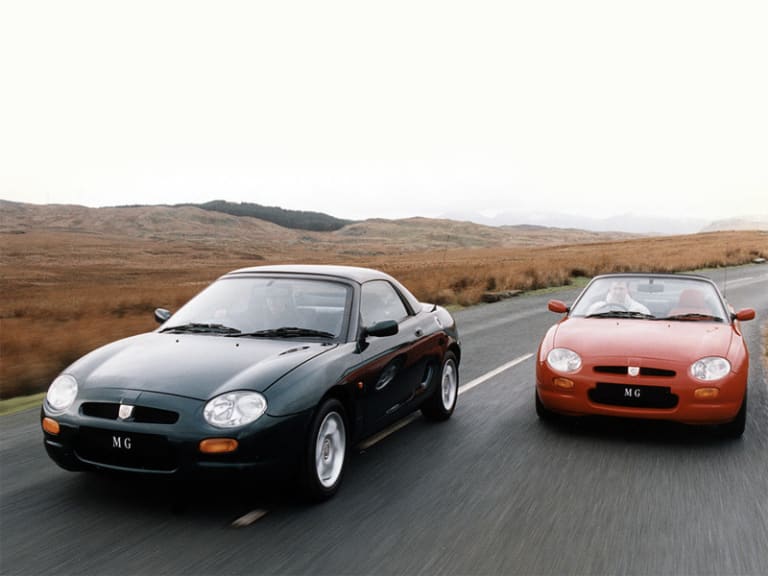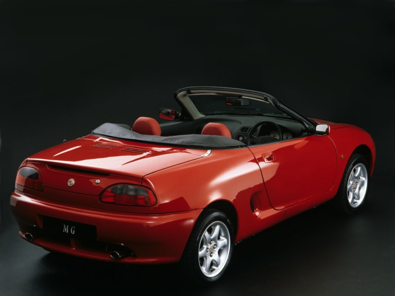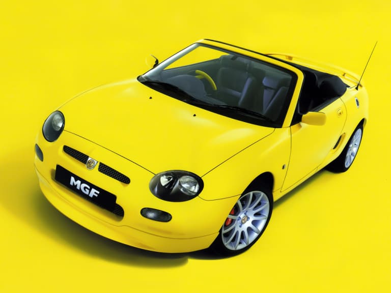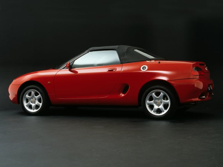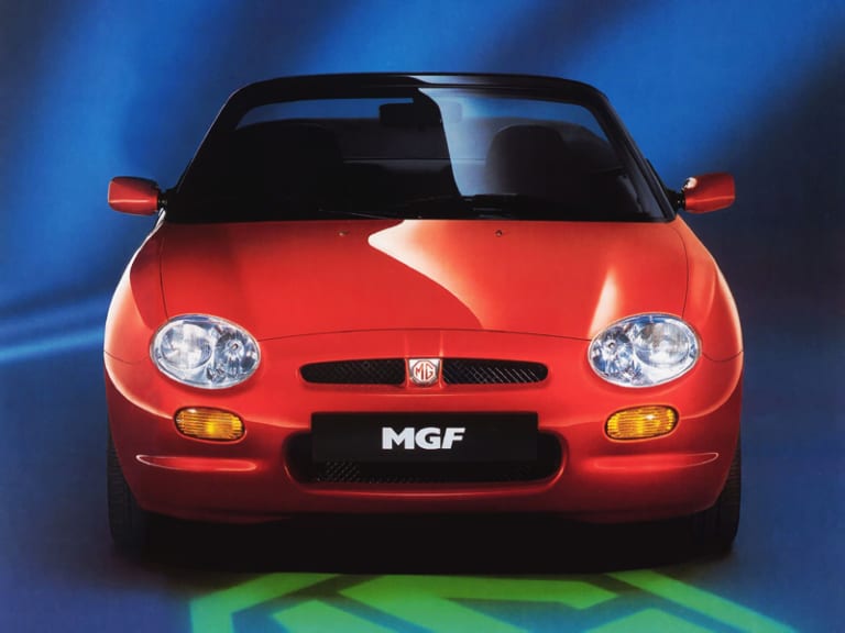 À Genève en 1995, tout le monde fond devant sa bouille de grenouille potelée. La nouvelle petite MGF se lance avec le même 1 800 cc disponible en nature (120 ch) ou en VVC (145 ch). Point de clim avant 1997, année où est également proposée une première série spéciale « Heritage ». De nombreux collectors suivront dont une très génétique « British Racing Green » équipée de valorisantes jantes d’esprit Minilite, qui seront ensuite proposées sur le reste de la gamme. En 2000 seront appliquées des améliorations techniques et des retouches cosmétiques : un tour de pare-brise couleur carrosserie et des clignotants cristal. Une boîte de vitesses automatique d’origine BMW complètera le catalogue. L’année suivante, la gamme s’étend par le haut et le bas : Pour fêter l’abandon par BMW (qui se retire de cette très mauvaise affaire…), 2 000 exemplaires d’une série « Trophy » gonflée à 160 chevaux se répartiront dans toute l’Europe. Elle comprend un kit carrosserie spécifique et des suspensions surbaissées. Puis une chiche version 1,6 l de 111 chevaux arrivera pour rendre plus compétitif un véhicule il est vrai  tarifé assez haut dès le début. Par contre, à ce prix-là, c’est sans radio, sans fermeture centralisée ni inserts décoratifs, ni rien…