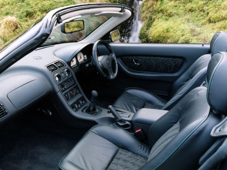 Deuxième petit défaut : avec son moteur à l’arrière, le train avant est très léger, trop d’ailleurs. La direction est très communicante et confère à l’engin une maniabilité de puce mais ne donne pas un sentiment de sécurité à haute vitesse. Toutefois, notons que la suspension Hydragas fait du bon travail. Et pour finir, un gros point noir : un joint de culasse réputé pour claquer avant 70 000 kilomètres, conjugué à une accessibilité moteur abominable… Les bouffées de chaleur du pétillant moteur K se révélèrent bien difficiles à refroidir en position centrale arrière. Il fallait bien une faiblesse de ce genre, si la voiture avait été trop fiable, elle aurait renié sa race de roadster anglais !
