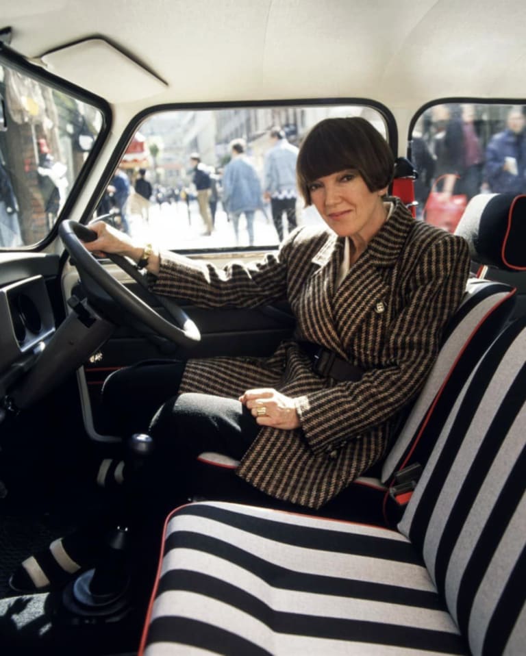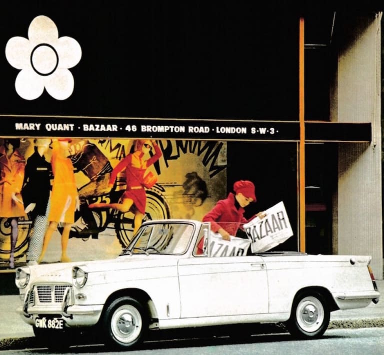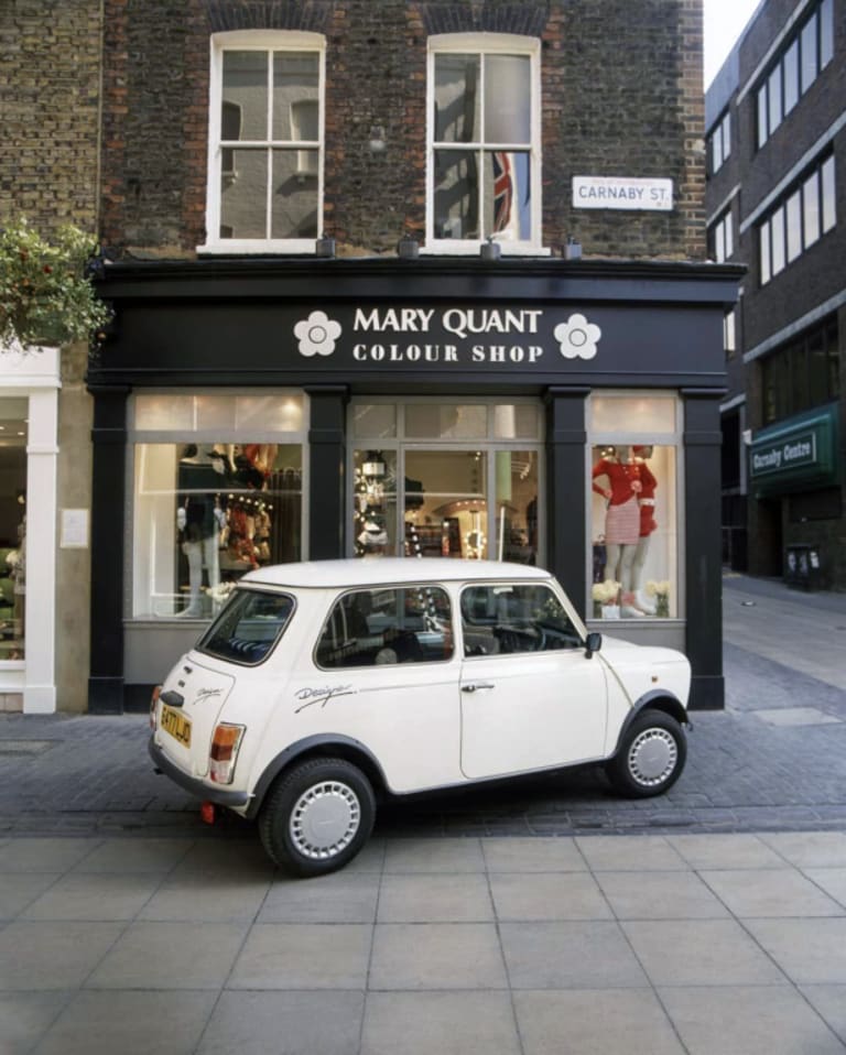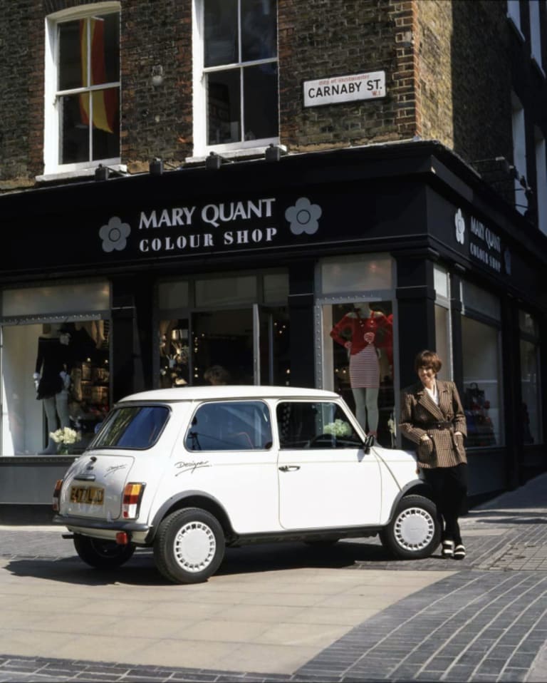 Mary Quant abandonne la mode dans les années 70 pour se consacrer notamment aux cosmétiques ; mais elle reste une icône outre-Manche. Si l’on ne sait pas qui, de Courrèges ou de Quant, inventa la minijupe, on sait en revanche qui des deux commença en premier les collaborations automobiles. Cocorico, cette fois-ci, c’est notre couturier national qui prend la main en lançant avec Matra et Simca la désormais fameuse Bagheera Courrèges en septembre 1974 (il œuvrera par la suite sur le Rancho, le Santana Samuraï et même la Citroën e-Méhari, entre autres). Pour Mary Quant, il faudra attendre 14 années et 1988 pour la voir s’intéresser à l’automobile.