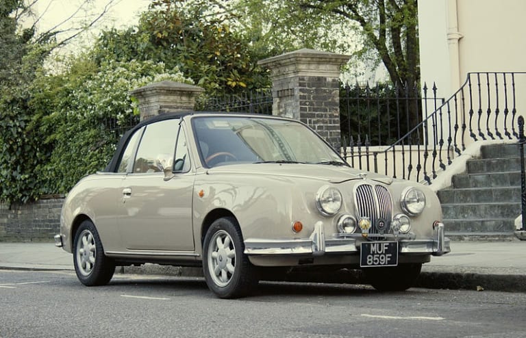 J’adore la Jaguar 240 de mon beau-frère, version « low cost » de la Mk2 (lire aussi : Jaguar 240), mais il faut bien l’admettre : la bébête de 1968 consomme un max, fait grave les bras sans direction assistée, pue l’essence, a une tendance à l’immolation, rouille un peu partout et souffre de divers petits maux récurrents faisant la fortune du spécialiste des anglaises de la banlieue Nord de Bourges. Aussi, parfois, je me demande si mon cher beau-frère, attaché au look, n’aurait pas mieux fait de s’offrir une Mitsuoka Viewt, plus moderne, plus pratique, et finalement pas si ratée que cela côté look.