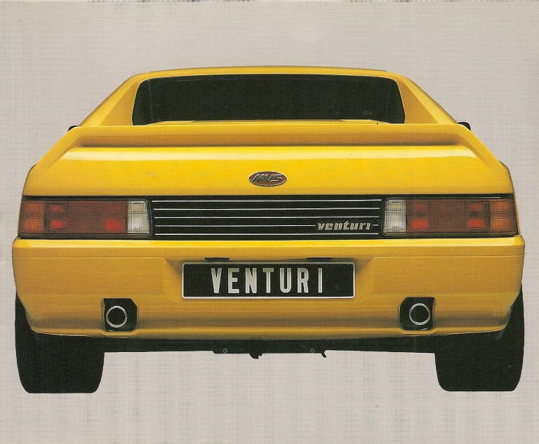 Tout commence en 1983. Claude Poiraud (l’ingénieur) et Gérard Godfroy (le designer) s’ennuient ferme chez Heuliez, le constructeur picto-charentais. L’idée folle de produire leur propre petite sportive les travaille depuis un certain temps. Idée folle ? Sans doute, mais les deux compères s’y collent et réalisent une maquette à l’échelle 1 qu’ils présentent au Salon de Paris 1984 sous le nom de Ventury (avec un Y, un clin d’oeil à l’Aventure et à l’effet Venturi). Si le moteur n’est pas encore choisi, les bases des futures Venturi (le y disparaîtra au cours de l’aventure) sont jetées, avec une ligne qui encore aujourd’hui reste d’une étonnante modernité.