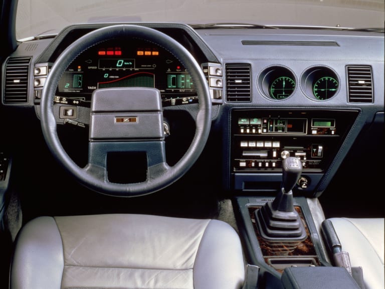 Car si, au chapitre du style extérieur, la Z31 est difficile à défendre, à l’intérieur, c’est tout l’inverse. En plus du bloc compteur à feux orange (un peu à la manière des Renault sportives, seraient-ce les amorces d’une future relation ?), elle intègre deux cadrans au centre de sa console, tournés vers le conducteur et l’informant de la santé du moteur. C’est la marque des coupés Z, avec les moteurs 6 cylindres. Mais elle jouit surtout d’un équipement très riche : sièges baquets réglables et gonflables, climatisation, régulateur de vitesse, vitres et rétroviseurs électriques, ABS, compteurs digitaux en option… Bref, c’est Byzance !