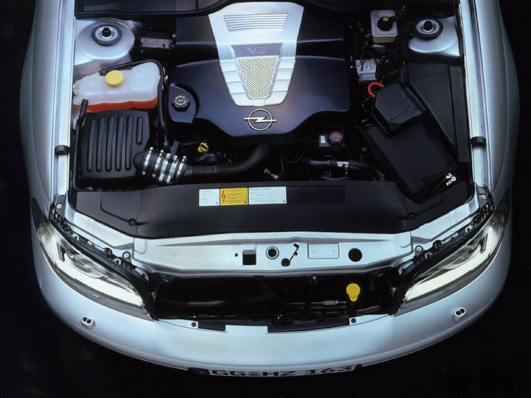 A contrario de la précédente Omega (A) et de son dérivé Lotus (lire aussi : Lotus-Omega), le nouveau flagship se voulait concurrent des BMW 535i et 540i, ou de la Mercedes E420/E430 : il s’agissait d’offrir le velouté et la puissance onctueuse d’un V8 coupleux plutôt que de créer une berline sportive type BMW M5. Grâce à la banque d’organe du groupe GM alors propriétaire d’Opel, il n’y avait même pas besoin de développer un nouveau moteur : il suffisait d’aller faire ses courses chez Chevrolet, et de revenir (comme le faisait depuis longtemps Holden en Australie) avec le LS1 V8 5.7 litres de la Corvette, juste retravaillé pour proposer moins de puissance (315 chevaux) et moins de bestialité.