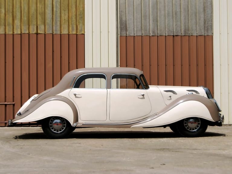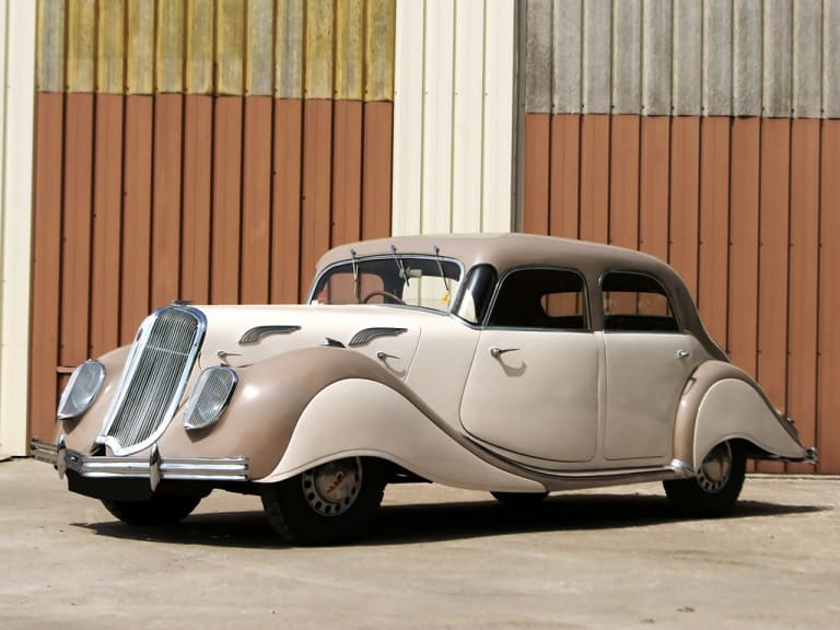 On l’oublie souvent tant on se souvient du Panhard plus populaire d’après-guerre, mais la vénérable firme était, entre les deux guerres, un constructeur de luxe. Panhard et Levassor se faisait alors le chantre du moteur sans soupape et du luxe innovant. La Dynamic, lancée en 1936, en est l’exemple le plus frappant, mêlant les dernières évolutions du 6 cylindres sans soupape et une carrosserie monocoque permettant d’abandonner les lourds châssis à échelle : une solution rarement utilisée sur les voitures de luxe. Avec son allure moderne, ses larges surfaces vitrées et ses phares carénés, la Dynamic avait toutes les chances de révolutionner l’automobile de luxe. Malheureusement, la seconde guerre mondiale passa par là.