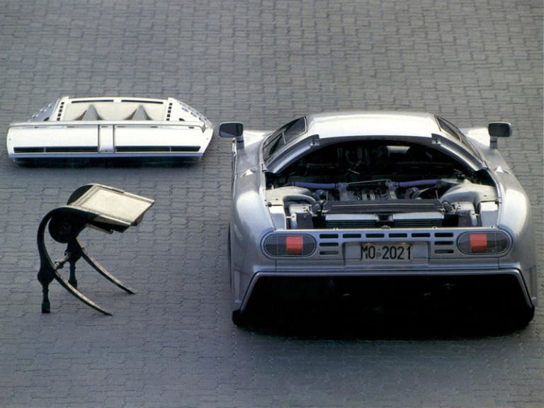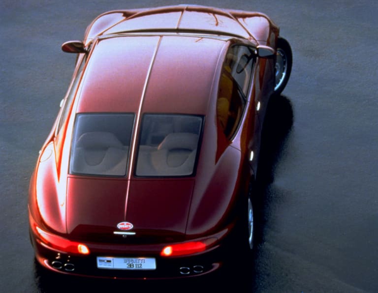 En mars 1993, la Bugatti EB112, dont la production doit commencer en 1996, est présentée au salon de Genève. Cette superbe berline de grand luxe est motorisée par le V12 Bugatti de 6 litres et 455ch, et dispose d’un chassis en carbone et d’une carrosserie en aluminium, d’une transmission intégrale et d’une boîte 6 vitesses. Elle est annoncée comme la berline la plus rapide du monde, avec plus de 300 km/h, malgré sa taille de 5,13 et ses 1800 kg. Elle ne sera malheureusement jamais produite en série
