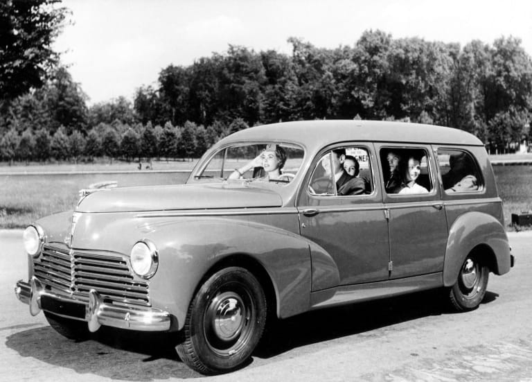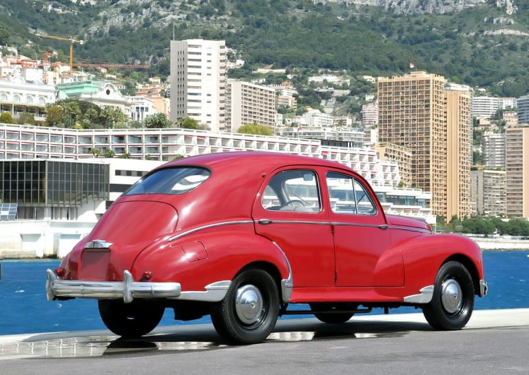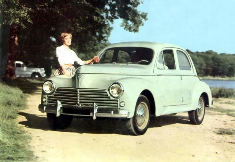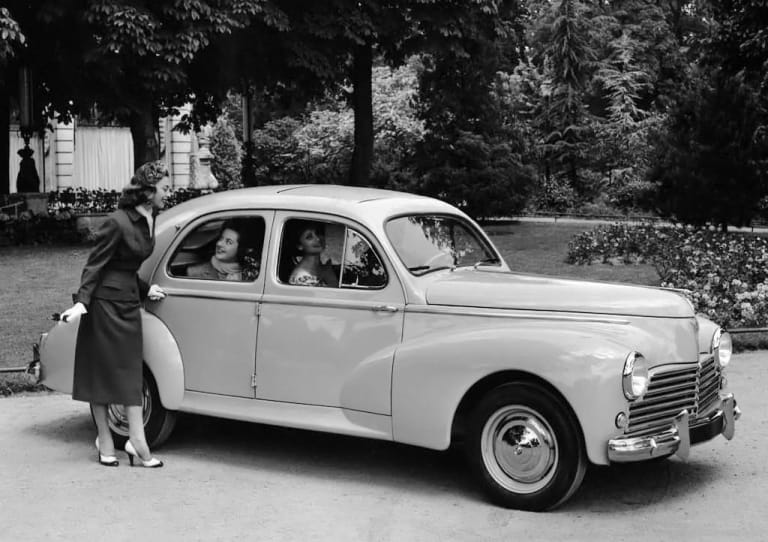 L’on ressortit alors les albums de famille dans lesquels la vaillante Sochalienne occupait souvent une place de choix. Émouvants clichés pris tantôt au lendemain de la livraison de l’auto, son premier propriétaire posant fièrement à son volant, ou bien sur une route côtière un jour d’été – combien de souvenirs d’enfance les quelque sept cent mille 203 produites ont-elles ainsi transporté ? Tout comme aujourd’hui, les collectionneurs d’il y a quarante ans (ceux-là même qu’on nomme à présent les boomers) cherchaient à retrouver les sensations, les odeurs, les rumeurs mécaniques d’une époque enfuie, d’un pays disparu, d’une innocence perdue aussi. Et c’est bien souvent au volant d’une 203 qu’ils y parvenaient, en adressant aux magazines précités des courriers qui commençaient tous par « Mon père avait la même »… De fait, c’est en 1948 que le modèle a fait son apparition, après un bref intérim assuré par la 202 présentée exactement dix ans auparavant et dont la production avait été relancée sitôt après la guerre. Comme la 4 CV ou la Simca 8, la nouvelle Peugeot est l’un des enfants du sinistre plan Pons, qui entendait structurer le marché automobile en assignant une ou deux catégories fiscales à chaque constructeur de masse, tout en rejetant les firmes les plus prestigieuses (Hotchkiss, Salmson ou Delage) dans une marginalité industrielle et financière qui leur sera fatale. C’est d’ailleurs à un vieux slogan Hotchkiss, la voiture du juste milieu, que la 203 fait irrésistiblement songer…