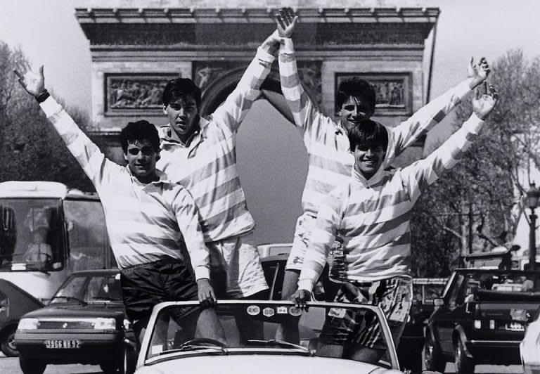 Les vainqueurs du championnat de France, le Racing, avec Franck Mesnel, créateur d’Eden Park… Une image revisitée par la marque quelques années plus tard