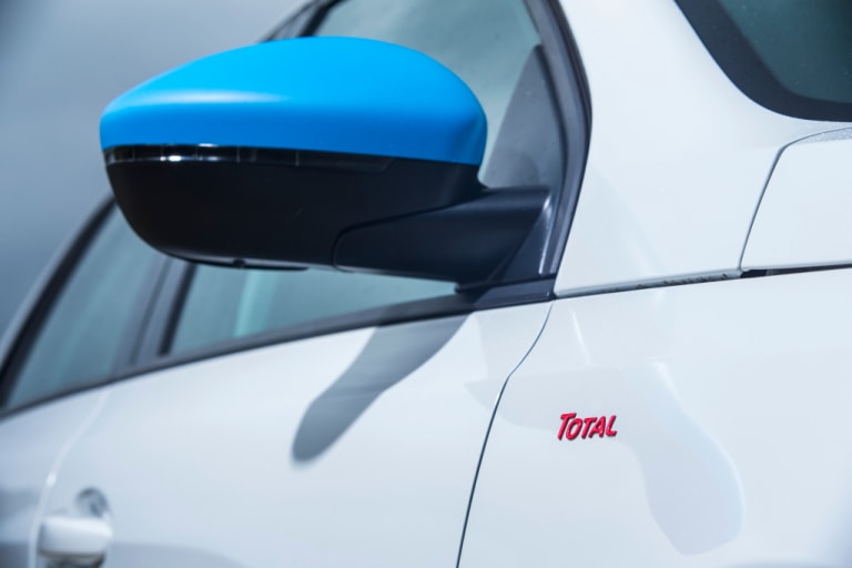 L’un des axes de communication majeurs de Total là bas, c’est le sport, et c’est tout naturellement vers cette marque que Peugeot Australia s’est tournée pour offrir une série spéciale de sa 308 en 2015, dite « Total Package ». Au menu, une peinture blanche nacrée, des coques de rétroviseurs bicolores (bleu, rouge ou noir, mariés avec le blanc de la carrosserie), des petits logos Total rouge sur les flancs et sur l’arrière, des jantes de 17 pouces noires et toutes sortes d’équipements en plus (5 000 $ australiens d’options pour un surcoût de « seulement » 2 300 $ par rapport à l’entrée de gamme).
