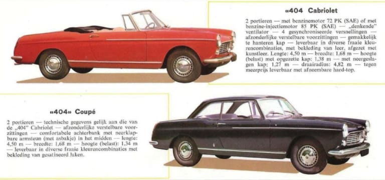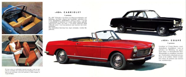 Il faut rendre hommage à une certaine ténacité chez Peugeot. Après l’échec des 203 Cabriolet et coupé (lire aussi : Peugeot 203 Coupé), puis la relative discrétion de la 403 Cabriolet, la marque décida de ne pas baisser les bras en accordant à sa nouvelle berline 404 les dérivés que sa superbe ligne signée Pininfarina justifiait. Lancée en mai 1960, la 404 était la réaction sochalienne au coup de massue de la présentation en 1955 de la Citoën DS qui ringardisait la 403 d’un seul coup (lire aussi : Citroën DS). Sans rentrer dans l’exubérance des chevrons, le Lion alla frapper à nouveau à la porte de Pininfarina pour un dessin plus moderne, plus « américain », et plus valorisant afin d’offrir une alternative crédible à la DS à une clientèle plus conservatrice, mais désireuse d’un certain standing. Vue l’urgence de la situation et l’obligation d’un temps de développement très rapide, le dessin fut inévitablement un peu inspiré des autres travaux de Pininfarina (Fiat 1800, Austin A55) mais en y ajoutant une personnalité propre.