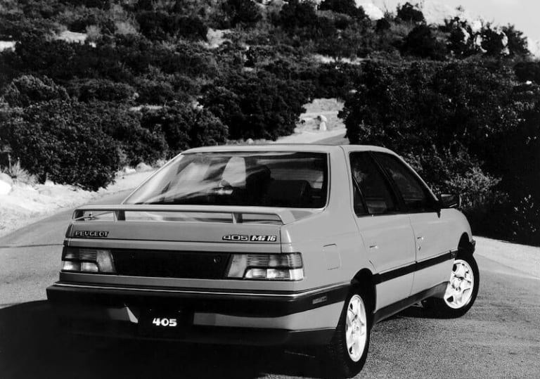 « Un constructeur sort ses griffes » : ce célèbre slogan apparu en 1982 n’était pas, comme tant d’autres, une formule cache-misère destinée à dissimuler les carences d’un plan-produit souffreteux. À partir de l’automne de la même année, la présentation de la 505 Turbo Injection, de la 305 série 2 puis, bien sûr, de la salvatrice 205 accompagnée des tonitruantes Turbo 16 puis GTi, confirma la spectaculaire renaissance du Lion de Sochaux, confiné depuis trop longtemps dans une grisaille conformiste peu propice au développement de modèles réellement performants. Dans le segment des familiales, cette stratégie timorée et calibrée pour rassurer et fidéliser une clientèle volontiers rassise finit par aboutir en 1984 à une 305 GTX qui, rétrospectivement, apparaît comme une sorte de brouillon de la 405 encore à naître. Dotée de liaisons au sol performantes et d’un moteur moderne (fondamentalement celui de la 205 GTi 1.9, mais ici doté d’un antique carburateur Solex), la plus performante des 305, même si elle présentait encore les stigmates d’une timidité quasi-maladive, annonçait assez précisément ce qui allait suivre trois ans plus tard. Ce qui, bien entendu, ne relativise en aucun cas l’ampleur du bouleversement suscité par l’apparition de la Mi16 !