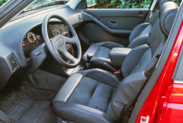 En outre, cette déclinaison sportive, bien que désirable, coûtait un bras pour une voiture en fin de carrière : 224 000 francs en 1994, soit 60 000 francs de plus qu’une Mi16. C’était certes 100 000 francs de moins qu’une M3 E36, mais en jouant dans une autre catégorie, ou bien qu’une 605 SV24 moins efficace. L’intérieur reste plutôt bien fini, et s’offre une sellerie spécifique (ainsi que des sièges) mêlant cuir et alcantara, tandis que la belle récupère des jantes de 16 pouces (ainsi qu’un aileron spécifique).
