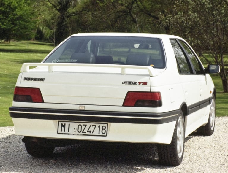 Nous sommes au début des années 90 : la 405, sortie en 1987, a déjà quelques années au compteur. Certes, sa version sportive Mi16 a jusqu’alors bien résisté à sa concurrente française, la Renault 21 2 litres Turbo, mais manque un peu de puissance, d’autant plus que le passage au catalyseur fait tomber son écurie à “seulement” 155 pensionnaires alors qu’au même moment, BMW jette un pavé dans la mare avec une M3 E36 diablement efficace de 286 chevaux. Autant dire que la berline Peugeot, même parée de son survêtement, ne fait plus du tout le poids.