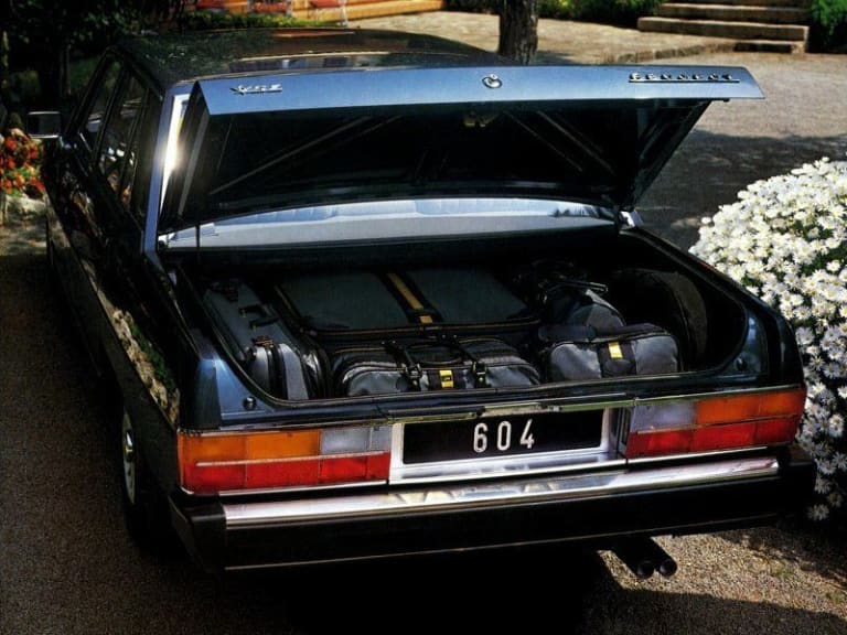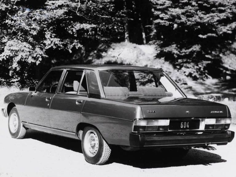 Certes élégante mais d’un conformisme rassurant, due au talent d’Aldo Brovarone pour le compte de Pininfarina, la carrosserie de la 604 ne se risquait pas, comme la Lancia Gamma, la Rover SD1, la Renault 30 ou la Citroën CX, à la hardiesse d’un dessin bicorps. Grande berline trois volumes, bien charpentée mais sans excès, la Peugeot opposait les immuables vertus de la tradition à la fonctionnalité exacerbée de la Renault avec laquelle elle partageait son moteur. La voiture de Billancourt, avec sa transmission aux roues avant, son hayon arrière et sa banquette (difficilement) escamotable, prenait, de ce point de vue, l’exact contrepied de la Sochalienne, propulsion bon teint, demeurant fidèle au schéma technique des 403, 404 puis 504 qui l’avaient précédée, chacun de ces modèles correspondant à une prudente montée en gamme. Seule concession à la modernité, les roues arrière indépendantes adoptées par la 504 en 1968 se retrouvaient tout naturellement dans ce qui, en définitive, n’était que son émanation vers le haut de gamme. Car, hormis son moteur, la 604 ressemblait vraiment beaucoup à une « super 504 » – jusqu’à ses portières, spécifiques mais dont l’évidente parenté stylistique amenuisait le prestige revendiqué par Peugeot pour sa dernière-née.