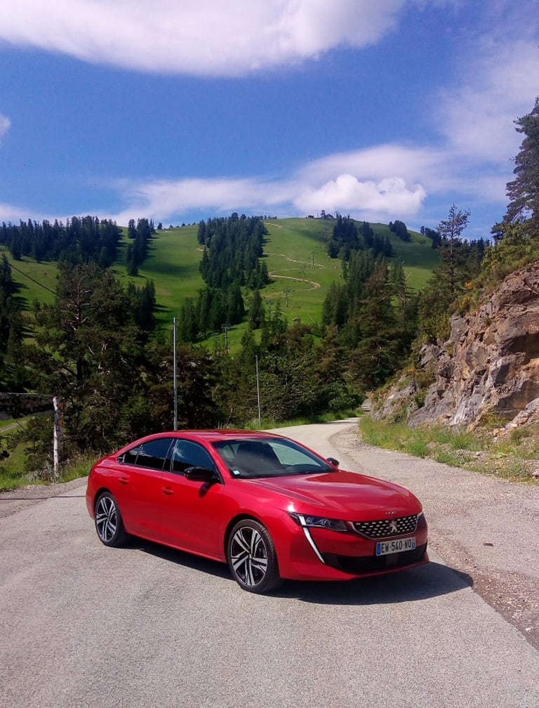 Une fois sortis des zones urbaines ou d’autoroutes, nous avons pu enfin faire « mumuse » avec la 508. Avec un peu plus de 1,4 tonne « seulement » et 225 chevaux, on est déjà dans un rapport poids/puissance intéressant. Plus courte, et donc plus légère, elle se passe d’une technologie type 4Control de sa concurrente française Talisman pour enrouler les virages comme à la parade : une fois la position de conduite idéale trouvée pour bien sentir la voiture, s’amuser avec le petit volant tout en voyant l’i-cockpit, on dirige la 508 avec deux doigts, y compris dans les virages serrés. Malgré une puissance supérieure à la limite fatidique de 200 ch qui marque encore une frontière dans l’esprit des gens, il ne s’agit pas d’une sportive à proprement parlé, mais elle se place au millimètre, sans effort, le tout avec un amortissement de haut niveau malgré les routes de montagnes dégradées. Ca, c’est l’effet des suspensions pilotées par une caméra qui scanne la route, à l’instar de la DS 7 Crossback.