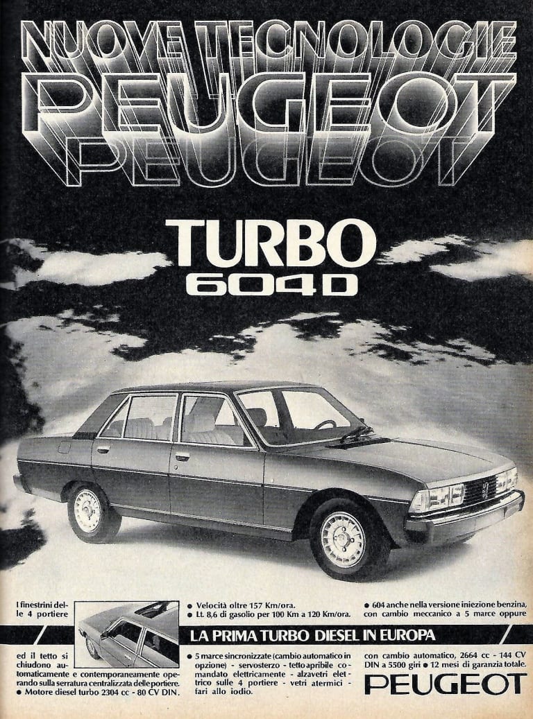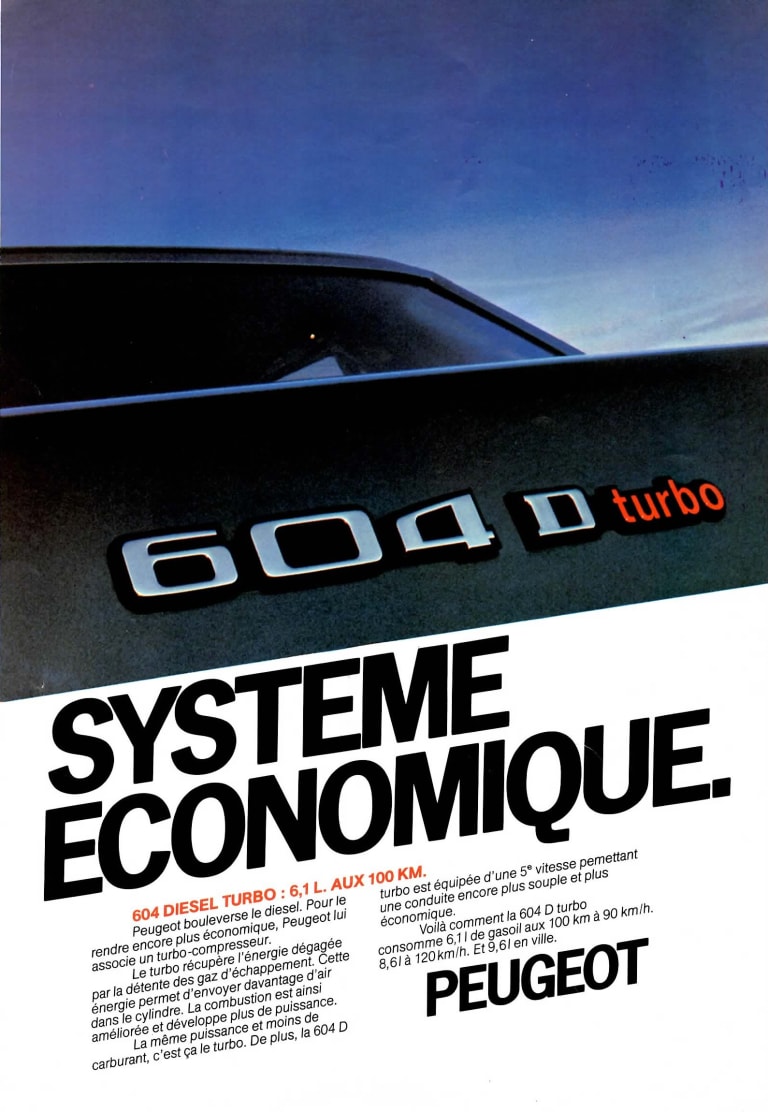 « Le Diesel ? À éviter ! » Combien de fois a-t-on pu lire ce jugement lapidaire en conclusion d’articles consacrés à des youngtimers, ou même à des automobiles plus anciennes, qui ont eu le malheur d’être proposées avec des moteurs de ce type ? Certains snobismes ont la vie dure et, aux yeux de beaucoup d’amateurs, la noblesse mécanique véritable ne concerne que l’essence — et peu importe qu’Audi ou Peugeot aient pu remporter les 24 Heures du Mans à l’aide de machines ainsi gréées. Dans le domaine des voitures de série, si l’on accepte d’en rester au stade des stéréotypes éculés, on peut bien sûr se contenter d’évoquer la modestie des performances, les inconvénients du préchauffage, certaines odeurs peu ragoûtantes ou l’exhalaison de fumées envahissantes mais, à la vérité, la redécouverte de certains modèles s’avère souvent surprenante à l’usage et donne envie d’explorer leur histoire. C’est le cas de la 604, première berline Diesel suralimentée commercialisée en Europe, ce qui lui évita de sombrer corps et biens et qui, accessoirement, justifie que nous nous penchions sur son cas…