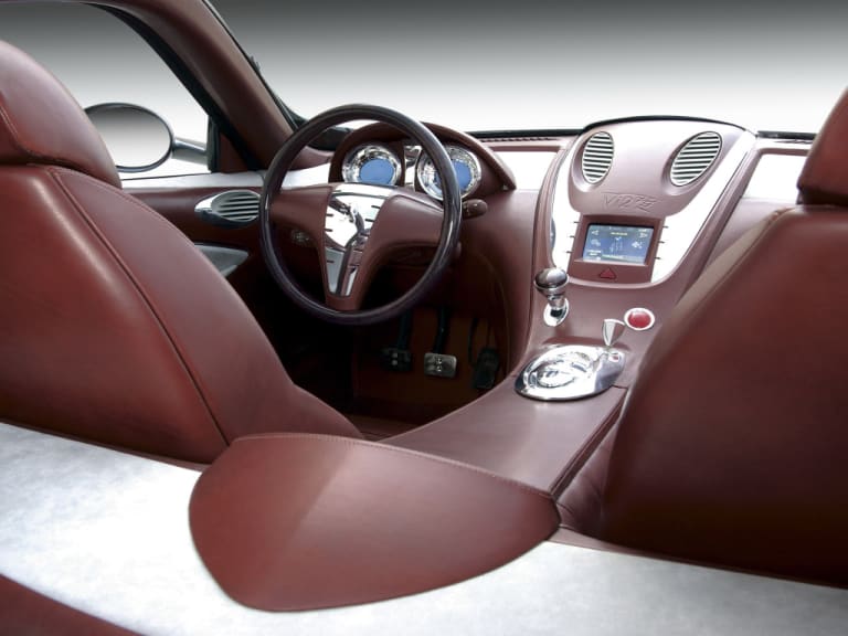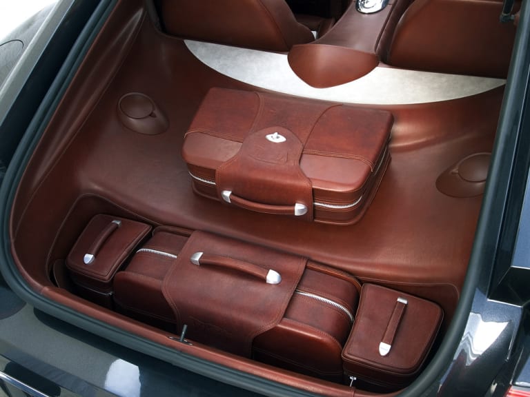 Autre morceau de bravoure, l’intérieur : c’est le luxe ! Cuir chocolat, alcantara gris, alu, volant et pommeau en bois précieux, compteurs analogiques travaillés qui auraient encore leur place dans une Pagani ou une Spyker, et même un GPS (à cette époque, un écran dans une voiture, qui plus est tactile, ça faisait rêver). Clou du spectacle, la ligne de bagage assortie à l’intérieur tendu de cuir. Le toit vitré apporte un surplus de luminosité et de standing à cette voiture qui n’en manque pourtant pas. Pour moi, elle égale sans peine l’intérieur réussi des Bugatti ou Pagani citées plus haut. La SLR ferait presque « cheap » à côté, seule la Carrera GT peut se targuer d’avoir autant de charme. En 2004, ça faisait bien longtemps que l’on n’avait pas vu une GT française. De ce côté-là, Peugeot avait vraiment réussi son pari.
