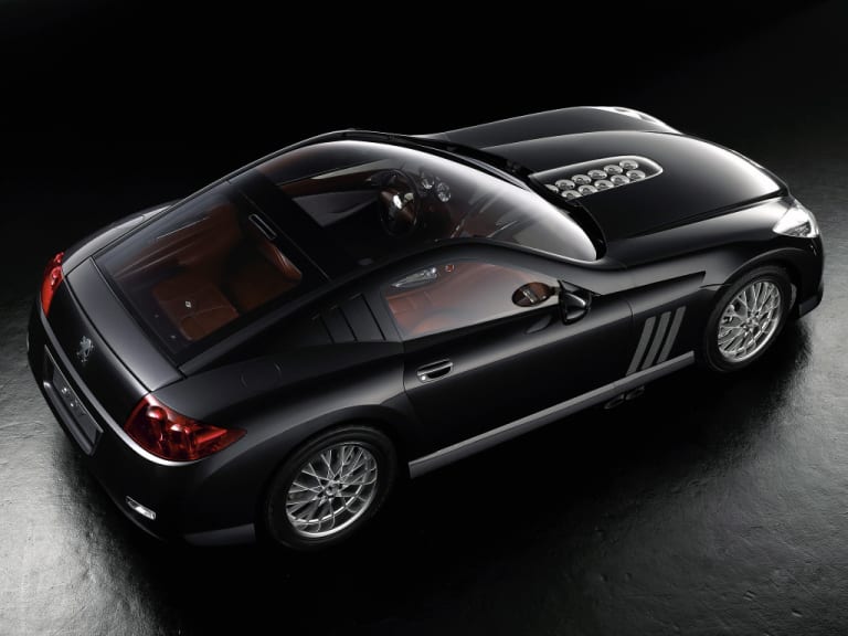 Le profil est lui aussi bestial, l’habitacle très reculé rappelle les proportions de la SLR, éventuellement d’une Viper, mais en plus majestueux. Double sortie d’échappement latérale, ouïes d’aération, tout y est. L’arrière ? Hyper agressif, avec son diffuseur et ses larges hanches. Seule, la voiture paraît immense, elle est pourtant 30 cm plus courte que la SLR et que la 407 (soit 4,37m) ! Mais aussi large et basse que la Mercedes (1,22m de haut seulement et 1,88m de large).