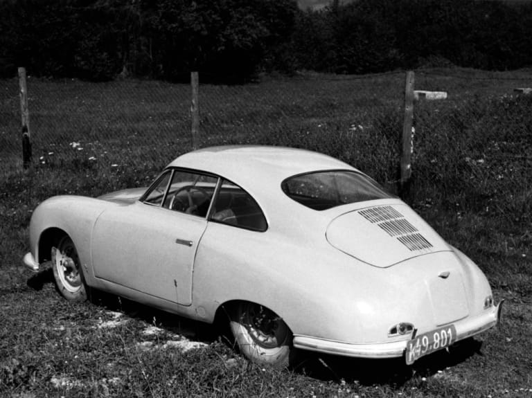 Lorsque Ferdinand Porsche revient à Gmünd, le projet 356 a déjà bien avancé. Le 17 juillet 1947, les petits ateliers en bois sortent un premier prototype. La 356 roadster n°1 ne possède que deux places, son 4 cylindres à plat est alors en position centrale, tandis que son châssis reste tubulaire. Bien que la future 356 risque encore d’évoluer, ce premier proto permet d’engranger les premières commandes, payées à l’avance. Déjà, un petit succès se dessine. En 1948, la 356 est homologuée avec déjà quelques différences : une coque autoporteuse, une cylindrée moindre (1 086 cc) et un moteur en porte à faux arrière, comme la Volkswagen dont elle dérive désormais.