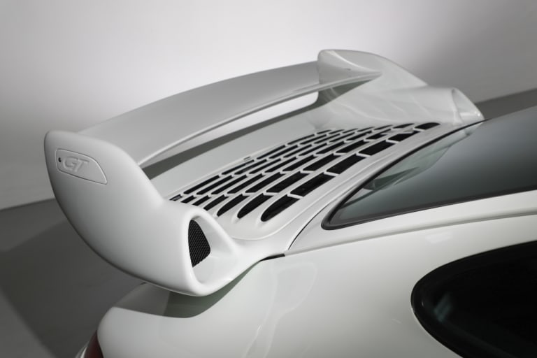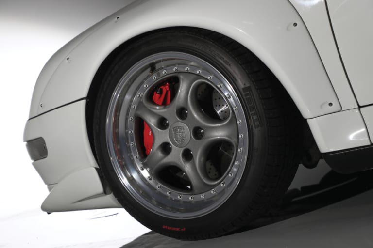 C’est d’ailleurs la raison principale de l’existence de la Porsche 911 GT au catalogue : pour engager la 993 en championnat GT2, il fallait produire une série d’au moins 25 exemplaires d’une version route. La Carrera RS avait déjà frappé fort côté aileron, mais la GT allait directement s’inspirer de la GT2 de compétition en intégrant des extensions d’aile la faisant ressembler à un croisement avec une 930. Pour l’occasion, Porsche décida de rester tellement proche de la compétition que ces extensions ne prenaient même pas la précaution de masquer les rivets d’accroche.
