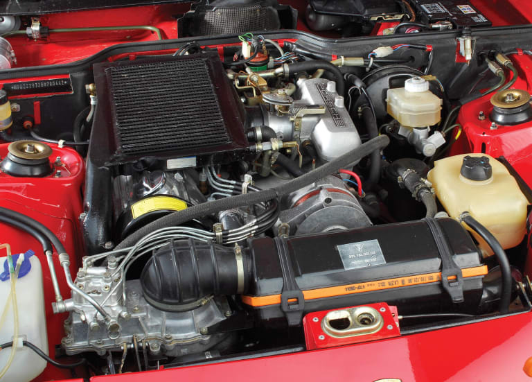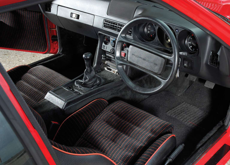 Avec sa transmission transaxle rejetant la boîte à l’arrière et favorisant ainsi la répartition des masses, la 924 présente des qualités routières exemplaires, si l’on excepte un freinage assez peu convaincant en début de carrière. Malheureusement pour elle, non seulement son moteur n’est pas implanté au bon endroit pour les thuriféraires de la 911 mais, par surcroît, il s’agit d’un « vulgaire » quatre-cylindres en ligne dont les cotes rappellent furieusement celles du 2 litres Audi que l’on trouve alors dans la berline 100, mais aussi sous le capot de la camionnette Volkswagen LT. Et pour cause : le bas-moteur est le même, les motoristes de Porsche s’étant contentés d’intervenir sur la culasse. À l’arrivée, la 924 européenne délivre 125 ch et tangente les 200 km/h chrono dans les meilleures conditions (par charité, nous ne nous étendrons pas sur les capacités des versions américaines, frappées de plein fouet par la dépollution). Ce niveau de puissance satisfait une certaine clientèle, tout éblouie par le prestige du logo et aux yeux de laquelle les performances chiffrées passent au second plan, la promotion sociale engendrée par le fait de rouler en Porsche s’avérant bien suffisante dans la plupart des cas. Il n’empêche que le tableau d’ensemble demeure bien trop « tendre » pour une Porsche aux yeux des connaisseurs et c’est à leur intention que la firme de Zuffenhausen va se lancer dans une véritable course à la puissance destinée à restaurer la crédibilité de son modèle le plus abordable. Avec ses 170 ch, la Turbo apporte une réponse déjà très honorable, mais ce n’est là que le premier étage d’une très ambitieuse fusée qui, en 1981, va donner naissance à la 944…
