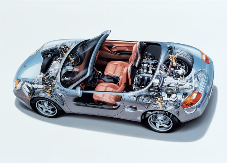 Il faut se rappeler : c’est la Mazda MX-5 qui, en 1989, a relancé la vogue du roadster simple et abordable. Le succès phénoménal de la petite japonaise a bien entendu donné des idées à bon nombre de constructeurs et c’est ainsi que, dans les dix ans qui ont suivi, l’on a vu apparaître les BMW Z3, Mercedes-Benz SLK, Toyota MR W30, MG F ou Audi TT qui, chacune à sa façon, se sont efforcées de réinterpréter le concept de la petite sportive biplace à toit escamotable, incarnant le plus souvent une descente en gamme. Alors emprisonné dans la monoculture 911 et sur le point de clore le décevant chapitre des « PMA », Porsche a joué son va-tout avec le Boxster, annoncé par un concept-car éponyme dès le Salon de Detroit 1993. Et, n’en déplaise à ses détracteurs, la voiture de série a réussi là où les 924, 944, 968 et 928 avaient échoué : élargir la gamme et conquérir une nouvelle clientèle tout en préservant l’ADN de la marque – une identité manifestement à toute épreuve que même les Cayenne Diesel n’ont pas réussi à écorner… Vendue moitié moins cher qu’une 911 Carrera, la 986 a indéniablement remporté son pari en son temps, indifférente aux aigris qui se gaussaient en évoquant une « Porsche du pauvre » mais n’étaient de toute façon pas en mesure de s’en offrir une !