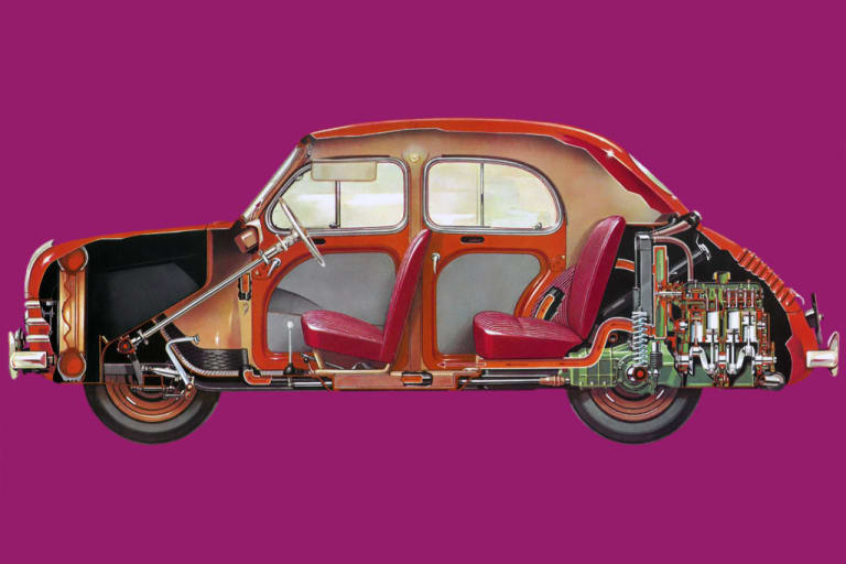 Présentée au Salon de Paris en octobre 1946, la toute nouvelle 4CV n’a bien entendu pas été étudiée puis réalisée en deux ans : impossible de tenir des délais aussi courts pour concevoir une toute nouvelle voiture, surtout à l’époque. En réalité, le projet d’une voiture populaire date de bien plus longtemps que la libération des usines de Billancourt en août 1944, la nationalisation de Renault en janvier 1945 ou la nomination officielle de Pierre Lefaucheux comme président en mars de la même année (en réalité, ce dernier administre l’entreprise depuis octobre 1944). Il faut remonter avant-guerre pour comprendre la genèse de cette petite motte de beurre, surnom affectueux que les Français donneront à cette adorable petite voiture ronde dans sa teinte jaune-crème.