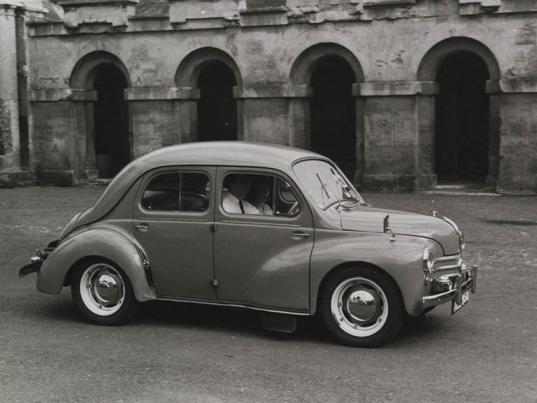 Dès la fin des années 30, Louis Renault, le tout-puissant fondateur de l’entreprise, perçoit les changements infimes du marché, même s’il n’est pas encore totalement convaincu. La crise de 1929 a profondément touché la France dès le début des années 30 et modifié la structure du marché automobile. Les grandes heures des automobiles françaises, luxueuses et/ou sportives, magnifiquement carrossées par des orfèvres, sont d’ores-et-déjà comptées. Son concurrent André Citroën l’a lui aussi pressenti en lançant une voiture standardisée, plus abordable (toutes proportions gardées) et plus moderne aussi : la Traction 7CV, puis 11 et 15. Malgré la perte de contrôle de son entreprise au profit de Michelin, Citroën avait vu juste. Louis Renault, quant à lui, lance en 1937 la Juvaquatre, une 6CV abordable, un peu contraint et forcé. C’est la première pierre d’une démocratisation des produits Renault.
