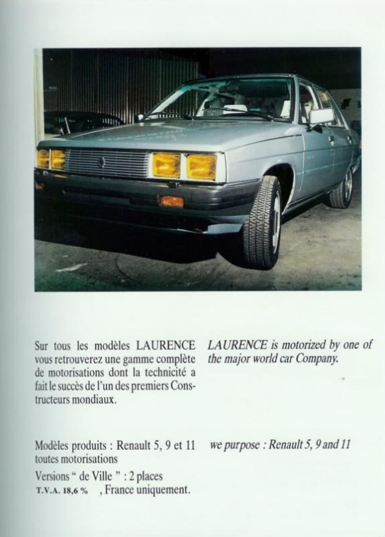 Laurence proposait aussi ses modifications sur les 9 et les 11 Malgré le relatif insuccès des Laurence, il y a fort à parier qu’on ait regardé avec attention, chez Renault, les activités de cette petite firme, initiant finalement la Supercinq Baccara et ses descendantes. En tout cas, rester à l’écoute du marché, il se peut que de temps en temps un exemplaires ressortent dans les petites annonces. Dans le même genre, Lecoq avait proposé, quelques années plus tard, une version luxueuse en série limitée de la Twingo (lire aussi : Renault Twingo Lecoq).