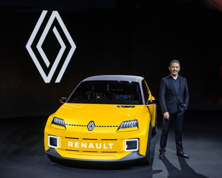 Gilles Vidal, la nouvelle Renault 5 et le nouveau logo inspiré de celui de Vasarely Telle qu’elle est présentée aujourd’hui, la Renault 5 prototype semble plutôt haut de gamme. Pourtant, le discours parle d’une citadine électrique accessible : elle devrait donc perdre un peu de sex-appeal pour répondre aux défis industriels et aux impératifs de coûts. Si cette version dynamique et pimpante séduit, qu’en sera-t-il d’une version plus bas de gamme, sorte de Zoé grimée en Supercinq Five ? Enfin, d’aucuns parlaient d’une possible Renault 4 new age elle aussi électrique : il n’en a pas été question lors de la conférence de presse, mais sait-on jamais…
