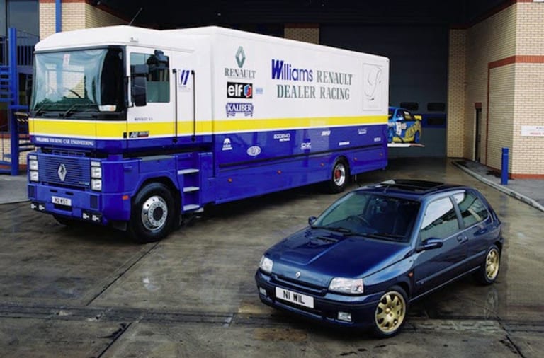 Dans ces conditions, la Williams — tarifée seulement 12 % plus cher que la 16s — combla instantanément le déficit de charisme que d’aucuns reprochaient à sa matrice, d’autant plus que l’accastillage des deux versions n’avait pas grand-chose à voir. À l’encontre de la discrétion étudiée de la 16s, la Williams préférait en effet des atours nettement plus suggestifs, la combinaison d’un bleu tonitruant et de jantes Speedline dorées (censée rappeler la livrée des monoplaces construites à Didcot) bannissant d’emblée tout espoir de tempérance esthétique. Le festival se poursuivait à l’intérieur, la moquette, les fonds de compteurs, la grille du levier de vitesses et les ceintures de sécurité arborant eux aussi un bleu électrisant que l’on retrouvait par surcroît sur le « W » floqué sur les sièges. Renault avait de plus songé aux amateurs d’exclusivité, avec — sur les Williams phase 1 de façon systématique et sur demande pour les phase 2 — une petite plaque numérotée fixée sur la planche de bord et jouxtant les aérateurs centraux ! Malheureusement, à l’instar de la Citroën Visa Chrono, le chiffre indiqué ne correspondait pas au numéro de châssis… Mais peu importe après tout, car la rareté de la Williams est bel et bien avérée : seuls 12100 exemplaires sont sortis d’usine de 1993 à 1996 (excédant largement les prévisions de Renault) alors que, pour sa part, la 16s (puis 16v) a trouvé 35000 acheteurs. De fait, de nos jours il n’est pas évident de trouver une Williams en état strictement d’origine : les « optimisations » furent légion, sans parler des voitures ayant étrangement perdu leur F7R au profit d’un F7P ou de celles qui ont « tapé », les châssis les plus talentueux ne pouvant pas grand-chose contre les excès d’enthousiasme de conducteurs n’ayant pas tous le coup de volant de Jean Ragnotti… Mère spirituelle des Clio R.S. 2 et 3, la Williams demeurera éminemment désirable à l’avenir parce qu’elle personnifie presque idéalement une ère : celle des gros moulins atmosphériques greffés dans des caisses dont la légèreté (990 kg à vide !) n’a pas fini de nous faire rêver. Si vous aimez conduire (et si vous adorez le bleu), vous savez ce qu’il vous reste à faire…