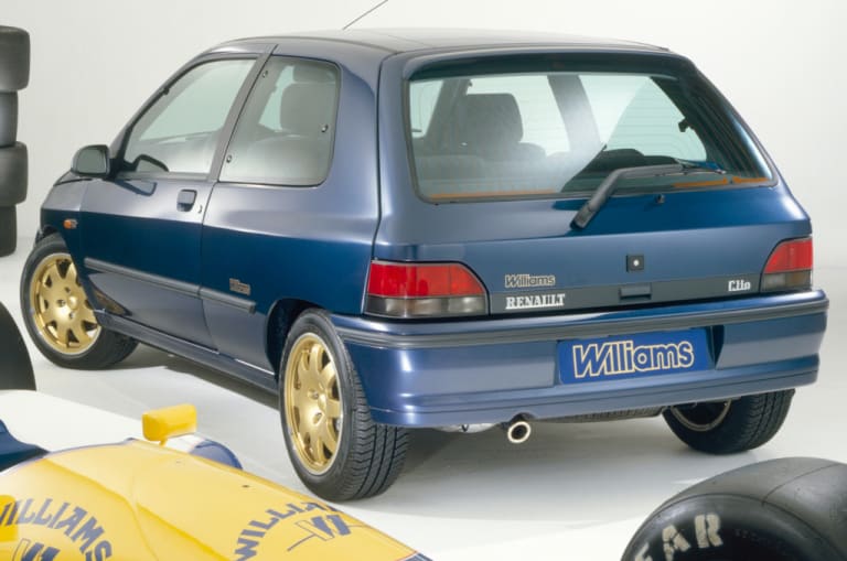 La cylindrée augmente donc, même si le moteur est le même à l’origine, et la puissance passe à 150 ch (pour un poids contenu sous la tonne). La Williams emprunte des organes à la Clio Cup ou à la 19 16s et devient la dernière reine des Gti. La Clio 16s (ou 16v à partir de 1994) était déjà une super petite sportive, mais la Williams place la barre encore un peu plus haut.