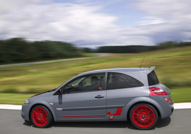 De longues années durant, Renault s’est tenu à l’écart de la course à la puissance entretenue dès le milieu des années 1980 par plusieurs constructeurs de berlines compactes. De la sorte, aux VW Golf GTi 16s et Opel Kadett GSi 16v répondit la brillante Peugeot 309 GTi 16, bientôt elle-même concurrencée par la Golf GTi G60, tandis que, de l’autre côté des Alpes, une certaine Lancia Delta Integrale, dans ses diverses déclinaisons, mettait tout le monde d’accord… Pendant ce temps, l’ex-Régie, sans se désintéresser du sujet, ne se mêla que de loin au débat, tout d’abord avec la 19 16s en 1990, puis cinq ans plus tard avec le premier coupé Mégane – lequel reprenait la mécanique de feue la Clio Williams, forte de 150 ch. Jusqu’à l’aube du XXIe siècle, Renault aura ainsi rendu des copies irréprochables, qu’il s’agisse de la mise au point du fameux moteur « F » dans ses variantes successives ou de liaisons au sol qui ont souvent fait référence ; mais la presse spécialisée formulait toujours le même reproche à leur encontre : ces autos manquaient de sel, de maestria, de brio, et leurs châssis étaient généralement considérés comme surdimensionnés par rapport aux ressources des moteurs qu’ils emmenaient.