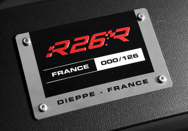 Outre un moteur désormais poussé à 230 ch, c’est surtout la présence d’un différentiel à glissement limité – équipement très peu répandu à un moment où la plupart des constructeurs préfèrent s’en remettre à l’électronique – qui convainc les amateurs. Ceux-ci remarquent également la présence en série d’un châssis « Cup », synonyme d’une efficacité encore accrue, au détriment du confort de roulage même si celui-ci demeure acceptable au quotidien. Tel n’est cependant pas le cas de l’évolution ultime de la R.S. : dévoilée en juillet 2008, la R26.R revendique sans ambages son caractère de pistarde accomplie. Si le moteur reste identique à celui de la R26 « de base », l’auto perd 123 kilos par rapport à celle-ci. Cet impressionnant gain de poids se perçoit aussi bien de l’extérieur (le capot moteur est en carbone) qu’à bord de l’auto, qui a perdu sa banquette arrière et la plupart des équipements de confort. Les sièges avant sont quant à eux remplacés par des baquets Sabelt équipés de harnais qui réjouissent les puristes mais sont évidemment très peu pratiques dans l’optique d’un usage quotidien, de toute façon peu recommandé aux dos sensibles étant donné la raideur extrême de la suspension. Automobile à piloter plus qu’à conduire, la R26.R – chronométrée en son temps à 8 minutes 17 secondes sur la boucle Nord – est sans conteste la plus captivante et la plus exclusive des Mégane R.S., comme en témoigne la cote des 450 exemplaires construits (dont 126 pour le marché français), tout près des 50 000 euros désormais…