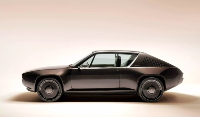 Disons-le d’emblée, nous ne sommes guère adeptes de cette tendance un peu lourdingue consistant à affubler des carrosseries anciennes de roues trop grandes et trop larges pour elles – d’où des ailes hypertrophiées dont l’intérêt nous échappe. La R17 à pile a ainsi perdu la gracilité de sa matrice, et c’est dommage. Le profil originel semble émerger de ces boursouflures latérales comme s’il cherchait à s’en débarrasser – mais il faut reconnaître qu’on a vu bien pire dans le genre, cf. la Porsche 928 Nardone… La poupe et surtout la proue sont quant à elles méconnaissables, transfigurées par les inévitables LED sans lesquelles plus aucun styliste ne semble capable de créer quoi que ce soit. Le visage de l’auto s’en trouve banalisé ; de pleine face, ce pourrait être à peu près n’importe quoi, l’original bandeau de 1971 se trouvant hélas simplement évoqué, car à présent noyé dans la masse et privé de toute nuance distinctive ; ôtez le losange trônant sur la calandre et vous pourrez songer aussi bien à un revival de la Ford Sierra qu’à un remplaçant pour le Hyundai Veloster. On est nettement moins trahi des trois-quarts arrière – à notre sens, l’angle le plus intéressant de la voiture, même si ses nouveaux appendices la font ressembler à une caricature d’elle-même. Et puis, saperlipopette, pourquoi avoir dessiné des passages de roues aussi carrés ? Pour « viriliser » la carrosserie, sans doute…
