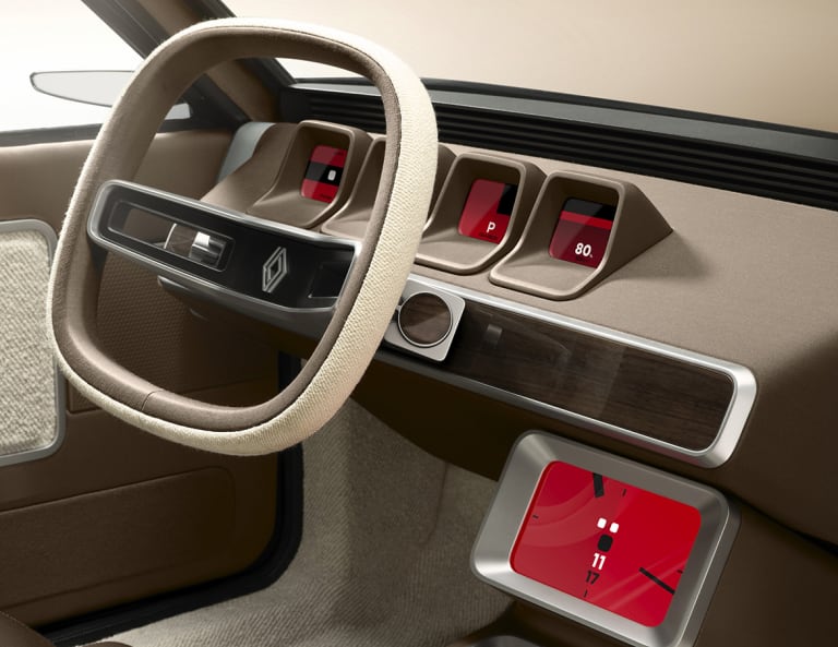 À l’heure actuelle, les designers de chez Renault ne semblent plus capables que de concevoir des SUV plus ou moins inspirés des Peugeot d’il y a dix ans, ou alors des réinterprétations électrifiées d’anciennes gloires de la firme de Billancourt (R5, R4 et bientôt Twingo). Au vu des prises de commandes de la nouvelle R5, un si regrettable manque d’imagination ne semble pas faire obstacle au succès commercial de cette stratégie, qui n’a néanmoins plus rien à voir avec l’audace qui fut celle du Losange dans ses grandes années. Cela étant dit, la R17 électrique – qui a au moins le mérite de ne pas être un vulgaire crossover de plus – sera-t-elle commercialisée ? C’est peu probable, semble-t-il – on se souvient encore des espoirs rapidement déçus que la Peugeot e-Legend avait suscités en 2018. Surtout en l’état, avec cet habitacle qui, nous devons le confesser, a suscité un vrai coup de cœur. Architecture générale, matières, coloris, tout est immédiatement captivant et la traduction contemporaine du tableau de bord d’origine mérite à elle seule une mention, mais rien de tout cela n’est industrialisable… Il n’empêche qu’à l’issue d’un examen attentif, et comme presque toujours lorsqu’il s’agit d’un restomod, l’aquoibonisme nous guette : en somme, tout ça pour ça ? Le puriste qui, en l’auteur de ces lignes, ne s’endort jamais tout à fait, préférerait sans doute qu’on laisse nos anciennes en paix, inscrites à tout jamais dans un passé qui ne demande pas à être « réinventé » mais simplement respecté. « Je suis né dans un monde qui regardait en arrière », écrivait Jean d’Ormesson dans Au Plaisir de Dieu en 1974. Je me demande ce qu’on aurait pensé si, au même moment, Renault s’était contenté de présenter une Celtaquatre revisitée au Salon de Paris. C’est sans doute ça, le drame intime des années 2020 : cette propension à défigurer le passé comme pour en faire un refuge plus acceptable face à un avenir qui fait peur à beaucoup. Et pourtant, quoi que l’on y fasse, la vie, c’est demain !