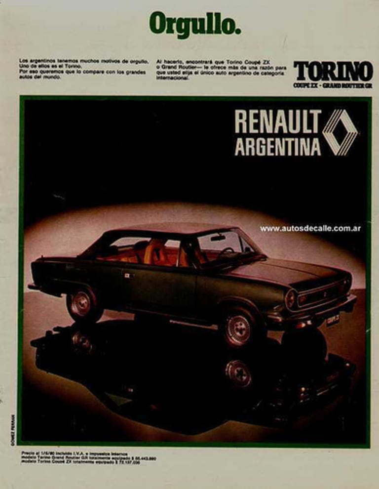 En 1967, Renault se renforce en Argentine et prend la majorité du capital d’IKA qui devient IKA-Renault, et récupère l’ensemble de la gamme sous sa marque. Si les modèles « non » Renault disparaissent petit à petit (les jeep en 1967, l’Ambassador en 1972), la Torino, elle, s’installera durablement dans la gamme Renault au milieu des R6, et R12 désormais produites en Argentine, et ce jusqu’en 1982.