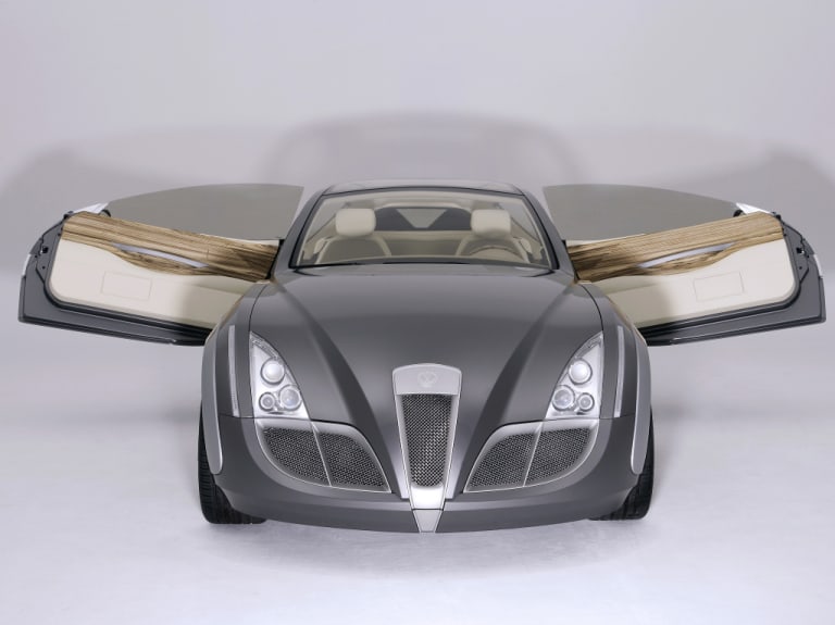 Durant l’année 2006, l’équipe de GREG va donc donner vie à l’Impression. La base sera la Mercedes CL65 AMG, qui fournira châssis et moteur, un V12 de 555 chevaux. La carrosserie restera assez fidèle au projet initial et à la maquette réalisée par A:level. A noter tout de même des portes à ouverture en élytre inversées. Le carbone est prépondérant, sauf à l’intérieur où le bois précieux un peu tape à l’oeil se marrie avec le cuir. Pas de ciel de toit dans l’Impression, mais un immense toit en verre. L’ensemble est un peu tapageur, un peu clinquant, mais pas forcément moche. Enfin, c’est bizarre quoi, sans pour autant choquer.