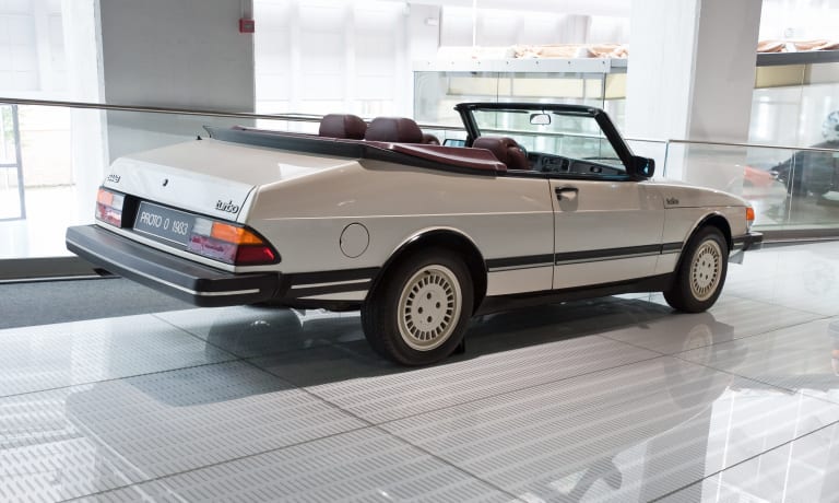 De leur côté, les Suédois ne baissent cependant pas les bras et travaillent sur la base du « Combi Coupé » 3 portes, tandis que les Américains jettent leur dévolu sur la berline 2 portes. Et ce sont ces derniers qui remportent la mise ; le résultat de leur travail est exposé, à l’automne de 1983, sur le stand Saab du Salon de Francfort, sous la forme d’un cabriolet blanc et intérieur cuir bordeaux, que l’on peut toujours admirer en visitant le musée consacré à la marque. L’engouement est immédiat et ce qui n’est encore qu’un concept car à la destinée incertaine va devoir évoluer vers une voiture de série ce qui, compte tenu des ressources humaines et industrielles du constructeur, va demander du temps ; de fait, ce n’est qu’au printemps 1986 que la voiture entre enfin en production, dans l’usine finlandaise Saab-Valmet d’Uusikaupunki. Très limités au début, les volumes contraignent la firme à contingenter sévèrement la diffusion de son premier cabriolet et, comme on pouvait s’y attendre, c’est l’Amérique du Nord qui est servie en premier — mais ne s’agit-il pas là d’un juste retour des choses ? De surcroît, la Californie, le Texas ou la Floride constituent autant de débouchés prometteurs pour un modèle dont on peut soupçonner qu’il risque de moins bien se vendre à Copenhague ou Édimbourg… À l’encontre des cabriolets, les préjugés sont alors nombreux et concernent aussi bien les risques de vandalisme que les problèmes liés à l’isolation thermique ou à l’étanchéité, certaines réalisations italiennes ou britanniques n’ayant pas laissé que de bons souvenirs en la matière…