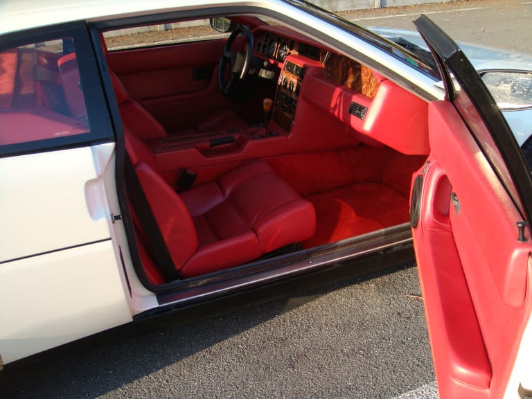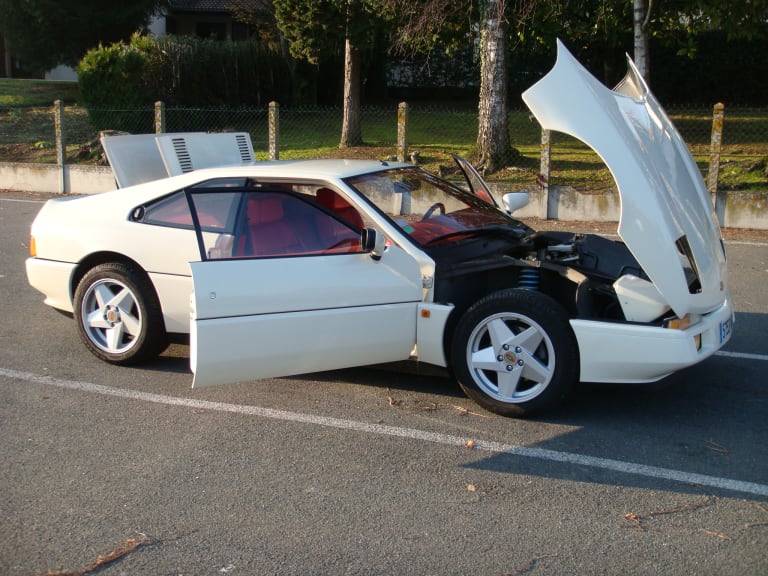 Je commence donc cette rubrique avec un superbe modèle qui, si j’en avait les moyens, serait déjà garé à côté de la Saab… Pour plusieurs raisons ! D’abord pour son nom : je suis un fan des Venturi de cette époque, avec cette ligne indémodable (on l’a vu sur le proto de 86 présenté au Mondial de l’automobile par Venturi, lire aussi : Venturi lance la production de l’America). Ensuite pour sa combinaison de couleur, blanc crème à l’extérieur, cuir rouge Cartier à l’intérieur, l’assemblage parfait, un petit côté framboisier qui donne faim. Enfin pour la rareté de ce modèle et pour son histoire…