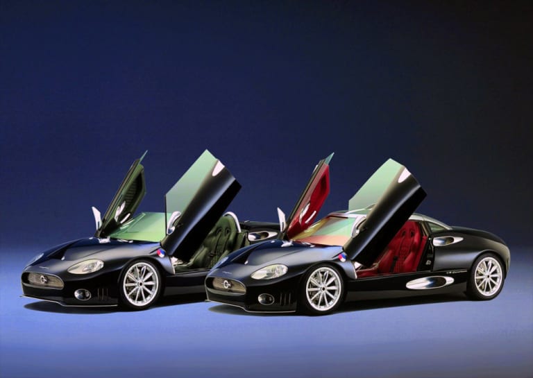 Alors que la Silvestris est un coupé, le premier concept officiel de Spyker s’avère être un Spyder. Mais l’année suivante, le coupé appelé donc Laviolette est lui aussi présenté. Entre les premiers dessins de Maarten de Bruijn et ces deux concept-cars, les progrès sont évidents : le style s’est affirmé, avec une tendance baroque plus que rétro, et la C8 qu’elle soit avec ou sans toit ne ressemble à aucune autre sportive sans pour autant choquer la clientèle visée. Au contraire, ronde mais musculeuse, elle satisfait l’oeil de celui qui cherche à se démarquer sans choquer. Pari réussi pour le duo d’entrepreneurs-constructeurs, mais qui brûle du cash comme au début du 20ème siècle. Il faut attendre 2002 pour le lancement effectif de la Spyder C8 tandis que le coupé C8 Laviolette n’entre en production qu’en 2004. L’industrie automobile, surtout artisanale, s’envisage sur le long terme.