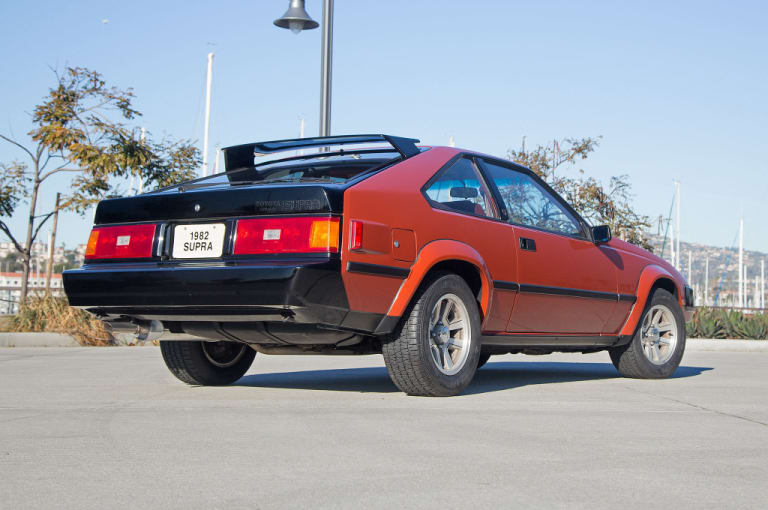 Pour la MK2, la recette est reprise (sur la base de la troisième Celica, vous suivez bien ?), mais en s’éloignant un peu plus du modèle de base cette fois-ci. En plus du capot bombé, la face avant est retouchée, plus agressive et relevée, pour accueillir un gros 6 cylindres en ligne. Deux versions sont disponibles, avec le même moteur : la L pour « Luxe » et P pour « Performance », cette dernière bénéficiant d’un kit carrosserie l’éloignant un peu plus encore de la Celica avec des élargisseurs d’ailes. Avec la P, le style est un condensé des années 80 : lignes anguleuses, élargisseurs, des ailerons, des jantes larges au dessin particulièrement réussi, et bien sûr les phares pop-up ! Cerise sur le gâteau, la carrosserie évoque une autre star nippone, en plus GT cela dit : l’AE86 Trueno, star du manga InitialD, et icône du drift au Japon, où elle fait figure de 205 GTI. En 1984, l’aileron du toit s’amincit au profit d’un second aileron en bout de malle, et un décalco Supra fait son apparition sur le coffre. Ce seront les principales évolutions stylistiques de ce modèle à la vie courte (1982 -1986).