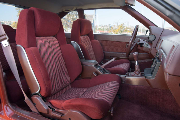 L’intérieur est par contre repris de la Celica, mais l’équipement est, comme tout coupé japonais des 80’s étudié pour les US, ultra complet : clim automatique, régulateur de vitesse, coussins gonflables pour les lombaires, siège et direction réglable. Le combiné, analogique sur les premières versions, devient ensuite numérique en option. Petite particularité, les fausses surpiqûres donnent l’impression que le tableau de bord est tendu de cuir, il n’en n’est rien. Mais les plastiques épais et robustes sont bien assemblés. Initialement, la L sera la seule à pouvoir recevoir le cuir et le toit ouvrant, mais ces options deviendront ensuite disponibles sur la P.