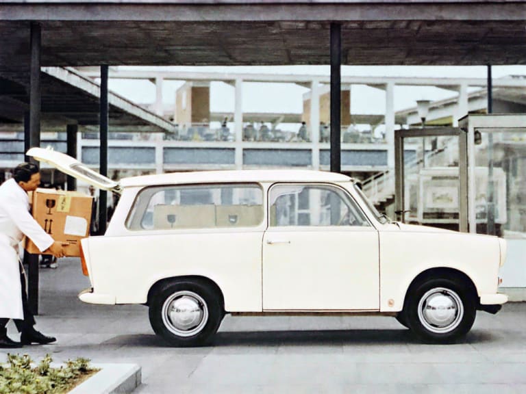 La 601 va alors devenir mythique dans cette Allemagne de l’Est qui se veut le modèle des démocraties populaires socialistes. Symbole du succès, et de la liberté (surveillée), les Trabant vont permettre aux familles d’aller à la campagne, ou à la plage sur la Baltique, le coffre plein à craquer. Comme les P50 et P60, la 601 va recevoir en 1965 une version « Universal », un break à 3 portes à vocation utilitaire (mais pas seulement) qui nourrira l’imaginaire des enfants de l’époque comme l’Acadiane chez nous !