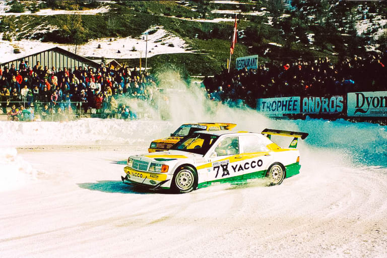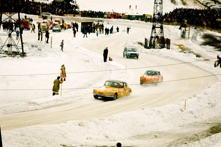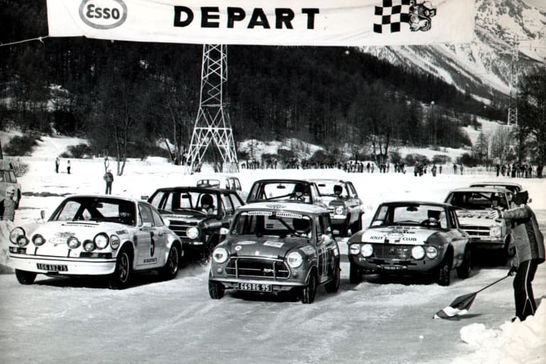 En France, on n’a pas de lac gelé, mais on a des idées. Prenez un parking goudronné en altitude. Laissez tomber la première neige de novembre. Tracez, tassez, damez, arrosez, puis renouvelez l’opération autant de fois que possible. En janvier, vous obtenez une belle piste glacée de 50 centimètres d’épaisseur, naturellement bordée par deux hauts murs de neige. Ainsi constitué, le circuit du Grépon de Chamonix accueille la première Ronde Hivernale en 1970, une épreuve conviviale qui attire d’entrée les constructeurs nationaux Renault (Alpine Berlinette A110) et Citroën (DS), ainsi que des vedettes comme Jean-Pierre Beltoise, Björn Waldegård, Henri Pescarolo, Jean-Claude Andruet, Bob Wollek ou Robert Neyret. Ce dernier, spécialiste du Rallye du Maroc, deviendra paradoxalement expert en matière de courses sur neige verglacée. D’autres se spécialiseront dans les batailles de boules de neige, contribuant à l’image « bon enfant » que véhicule toujours la discipline. En 1972, la Ronde de Serre Chevalier reprend le même concept sur un circuit de 800 mètres tracé dans la station de ski. Si l’idée d’un championnat germe déjà dans la tête du président de la FFSA Bernard Consten, deux courses ne suffiraient à le constituer. Il faudra attendre près de 20 ans.