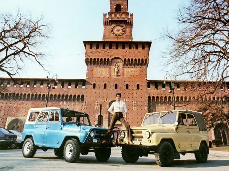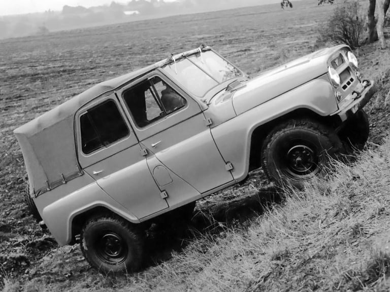 L’armée soviétique, durant la seconde guerre mondiale, avait reçu près de 2 000 Jeep Willys de la part des américains dans le cadre de la loi prêt-bail, et s’en était inspirés pour produire leur propre 4×4 militaire, le GAZ 67, à partir de 1943. Viendra ensuite le GAZ 69 en 1953, mais il fallait bien admettre qu’à l’Ouest, on s’activait au remplacement des Jeep par des véhicules plus modernes : le Land Rover en 1949, le Fiat Campagnola en Italie en 1951. Ces deux modèles seront la source d’inspiration du futur tout-terrain soviétique, l’UAZ 469.