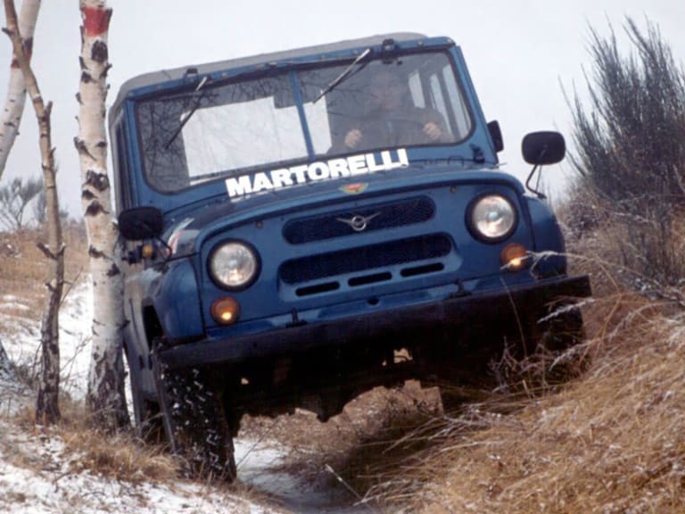 Dès les années 70, l’UAZ 469 va intéresser les frères Martorelli, en Italie. Important déjà le vieux GAZ 69, ils se dirent que cette nouvelle version pourrait bien intéresser une clientèle rurale désireuse d’un vrai franchisseur à prix riquiqui ! C’est ainsi qu’ils commencèrent, dès 1973, à importer ces beaux 4×4 soviétiques. En Italie, on trouvait quatre versions du 469 : l’UAZ Explorer, identique à son frère russe, l’UAZ Marathon doté d’un diesel Peugeot 2.5 de 76 chevaux, l’UAZ Dakar équipé d’un VM Turbo Diesel 2.4 de 100 chevaux, et l’UAZ Racing, avec un 2 litres Fiat essence de 112 chevaux. L’équipement était aussi un peu réévalué par rapport aux version russes, surtout dans les années 90. Entre 1973 et 1999, les frères Martorelli écoulèrent 6 662 exemplaires en Italie.