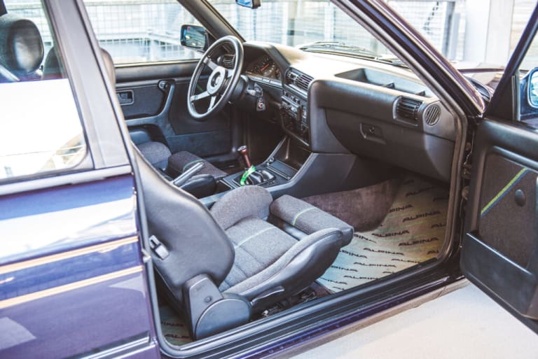 Alpina ne cherche pas à produire de gros volumes. « C’est un peu le « tailoring » usine chez Alpina. Les intérieurs sont sobres. Mon auto a le pont autobloquant, ce qui était très rare chez BMW il y a plus de 30 ans. »