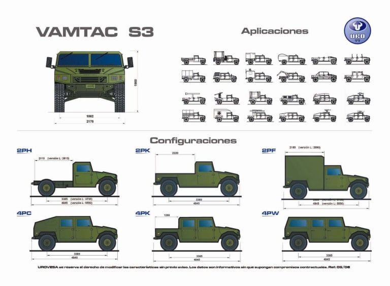 Bref, le Vamtac remporte l’appel d’offre, et la production va débuter en 1998. Entre cette date et 2003, Uro va produire 1200 exemplaires pour l’armée espagnole, en plusieurs configurations. En 2005, Uro va remporter un deuxième appel d’offre avec une version modernisée et mieux protégée, produite à 900 exemplaires pour l’armée jusqu’en 2009. En 2013 enfin, une troisième commande est lancée pour 772 nouveaux exemplaires (pour 149 millions d’euros, je vous laisse faire la division pour trouver le prix unitaire). Entre temps, Uro aura convaincu d’autres armées d’utiliser son Vamtac : Arabie Saoudite, Maroc, Singapour, Roumanie, Ghana, République Dominicaine, Malaisie, et Pakistan. Le Portugal utilisera en leasing le Vamtac jusqu’en 2006. Au total (armée espagnole comprise), environ 4000 exemplaires du Vamtac auront été produits depuis 1998.